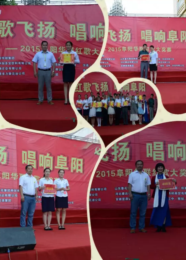 經(jīng)過(guò)激烈角逐,專(zhuān)業(yè)音樂(lè )評委最后評選出:夢(mèng)之聲合唱隊演唱的《黃水謠》勇奪合唱組冠軍。太平洋大酒店代表隊演唱歌曲《祖國不會(huì )忘記》奪得合唱亞軍。香港財富廣場(chǎng)三樓代表隊演唱歌曲《在太行山上》獲得合唱季軍。華聯(lián)集團分別頒發(fā)了2000、1000、500元獎金以示嘉獎!同時(shí)鄒甲甲、張冰、張桂英摘得個(gè)人獨唱前三甲桂冠!分別獲得600、400、200元獎金!阜陽(yáng)華聯(lián)集團對獲獎團隊、選手及優(yōu)秀獎得主均頒發(fā)證書(shū)及獎杯,祝賀他們!