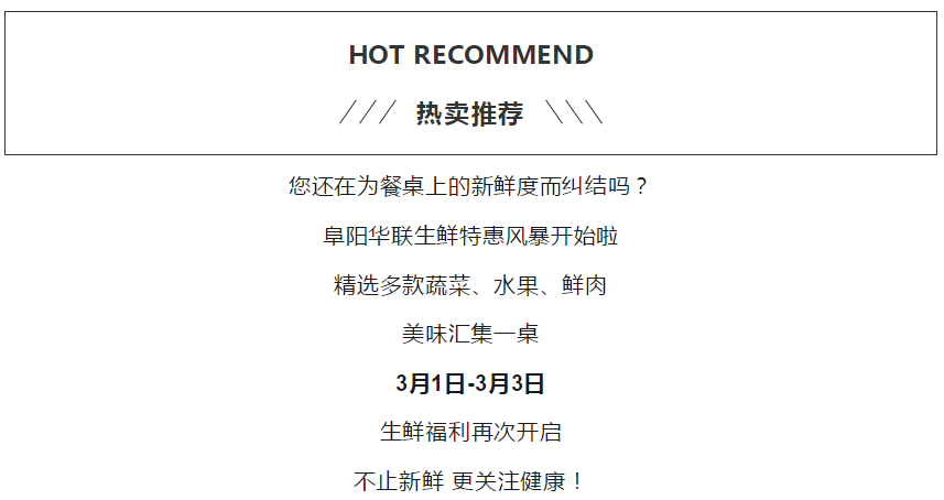【阜陽(yáng)華聯(lián)】阜陽(yáng)華聯(lián)生鮮特惠風(fēng)暴,更新鮮更關(guān)注健康