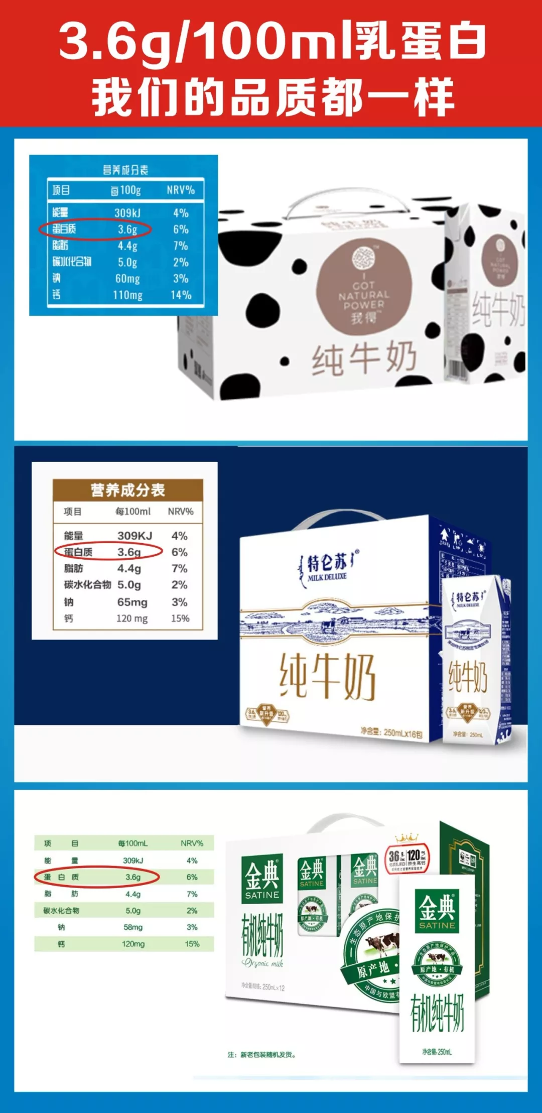 好品質(zhì) 天然乳蛋白3.6克,比國家標準高出20.3%,敢于和國內一線(xiàn)品牌媲美!