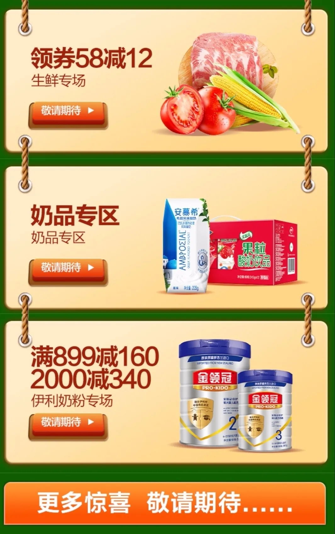 生鮮、奶飲零食、糧油、折扣區